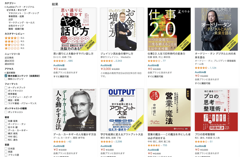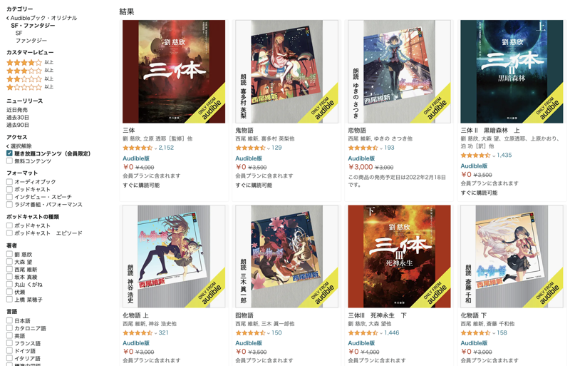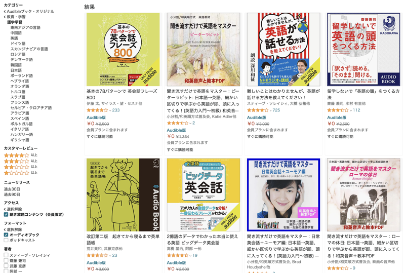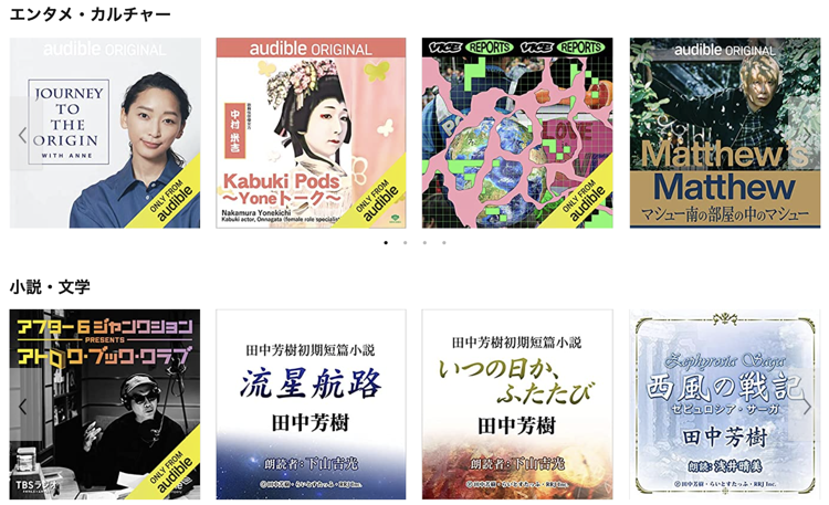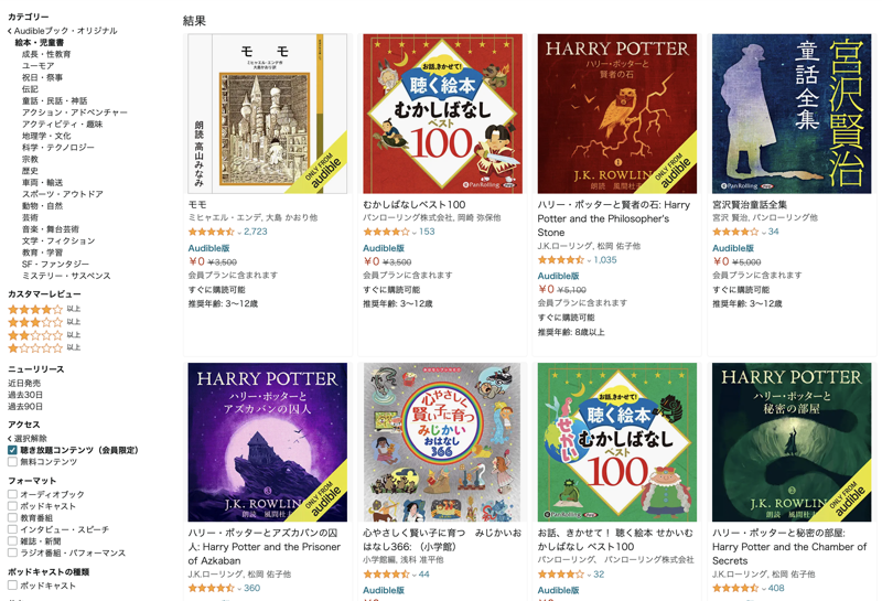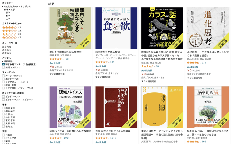 Audible の聴き放題の作品が正直、探しにくいです…。