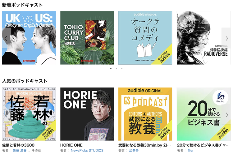 👇Audible は限定ポッドキャストにも力を入れており、徐々に増えてきています。